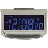 This clock is everything I was looking for (well, almost - it would be nice if it was atomic as well). It is small and slim, barely takes any space by the bed). The display is large enough to be seen from across the room. Very simple with one alarm (which I rarely would use). It is easy to set (the only drawback is that the numbers only go one way but there is a separate set for hour and minute so it makes it easier). It displays in 12/24 hour mode which is really nice and you can see the seconds going by (which to me is a BIG plus). The colors are very nice (yes, I like to play with this feature) and they set like a puzzle - there are three little buttons that you push in various ways and they determine the color of the display). At night, it is not too bright and you can see the display easily. The date and day feature is helpful as well. Have you ever woken up on a Saturday or Sunday thinking it's a work day? One look at the clock and you won't be confused anymore :) Overall, I am very pleased with this clock and would recommend it for someone who likes simplicity.